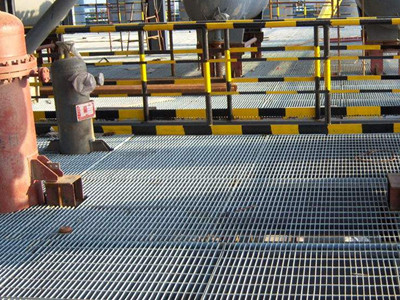 化工廠用鋼格板 鋼格板是用承載扁鋼和橫桿按照一定的間距進行正交組合,通過焊接或壓鎖加以固定的開敞式鋼構件;橫桿一般采用經過扭絞的方鋼、也可采用圓鋼或扁鋼,材質分為碳鋼和不銹鋼鋼格板主要用來做鋼結構平臺板、溝蓋板、鋼梯的踏步板、建筑物吊頂等。 簡介 ···